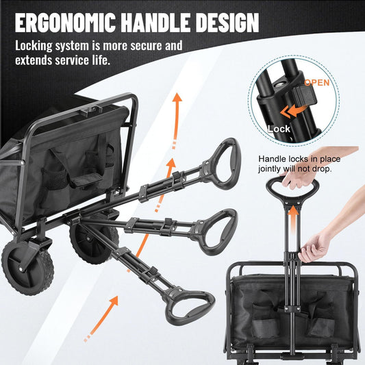 Multi-Functional Push-Pull Folding Wagon Cart with Rotating Handle & 9'x4' Beach Tires for Camping & Beach –300L XL Heavy-Duty, 480lbs load, Large Capacity for Transport, Groceries, and Outdoor Use