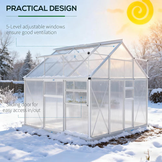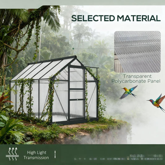 6.2'x8.3'x6.6' Gray Outdoor Aluminum Walk-in Polycarbonate Greenhouse