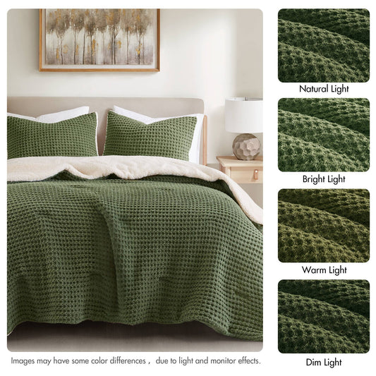 2 Pieces Twin Waffle Knit Chenille Comforter Set,Olive