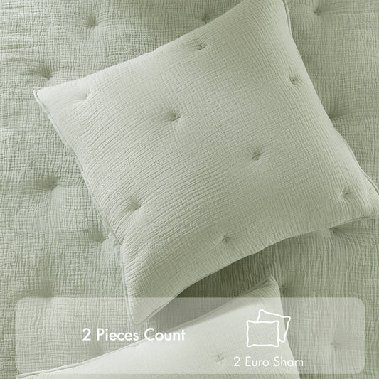 1-Piece Euro Sham Cotton Gauze Embroidered Euro Sham,Sage