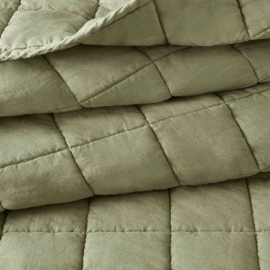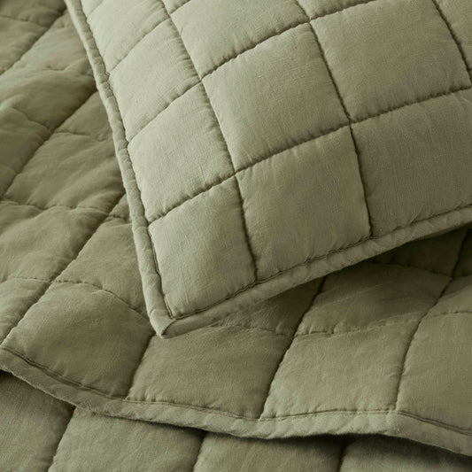 3-Piece Full/Queen Linen Garment Washed Quilt Set,Olive Green