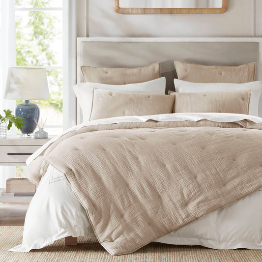 3-Piece King Cotton Gauze Embroidered Quilt Set,Taupe