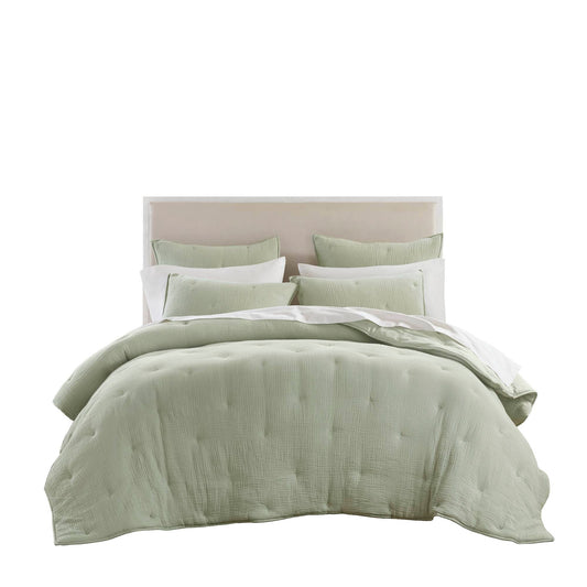 3-Piece Full/Queen Cotton Gauze Embroidered Quilt Set,Sage