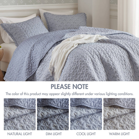 3-Piece Queen 3 Piece Ruffle Printed Quilt Set,Blue