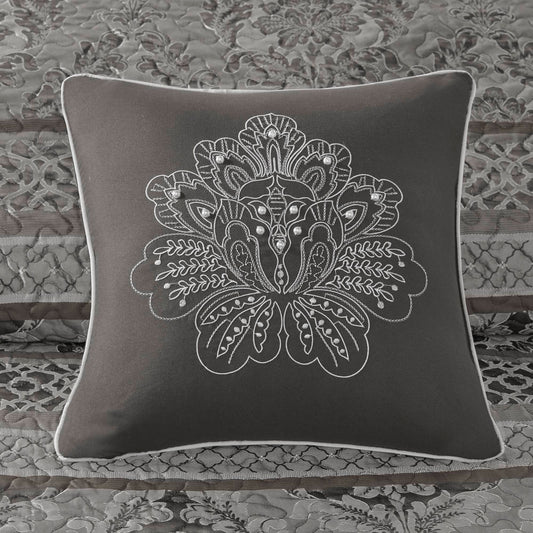 5-Piece Queen 5 Piece Reversible Jacquard Bedspread Set,Grey