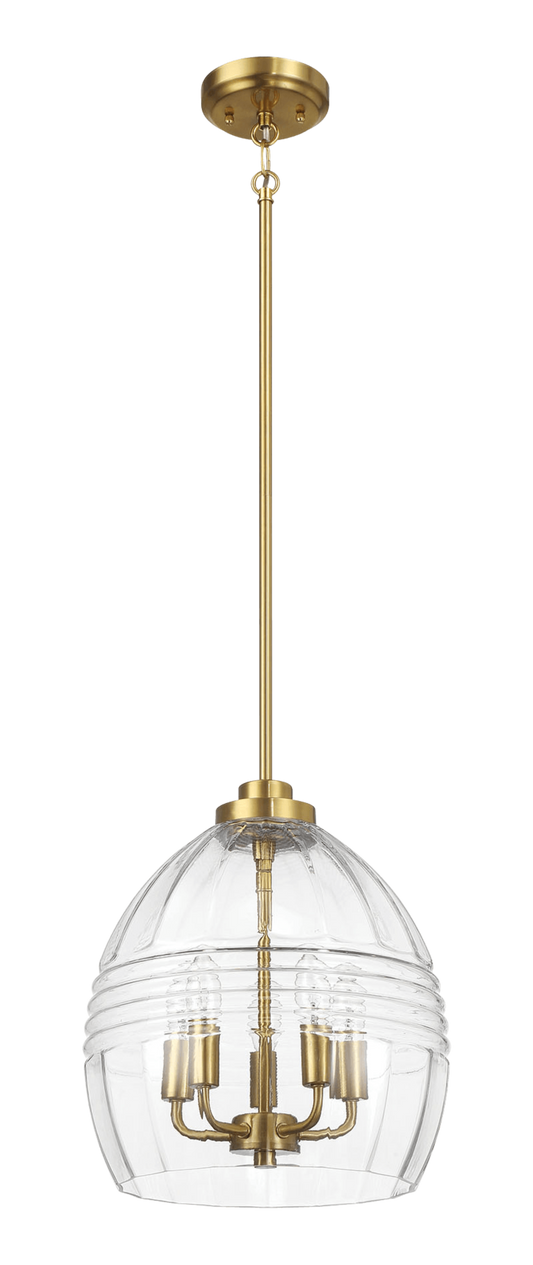 Soiree Four Candle Lights Pendant With Clear Glass - Satin Brass