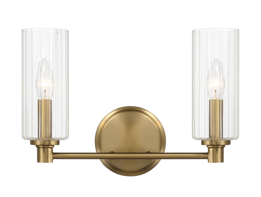 Regal Double Light Vanity With Clear Ribbed Glass - Satin Brass