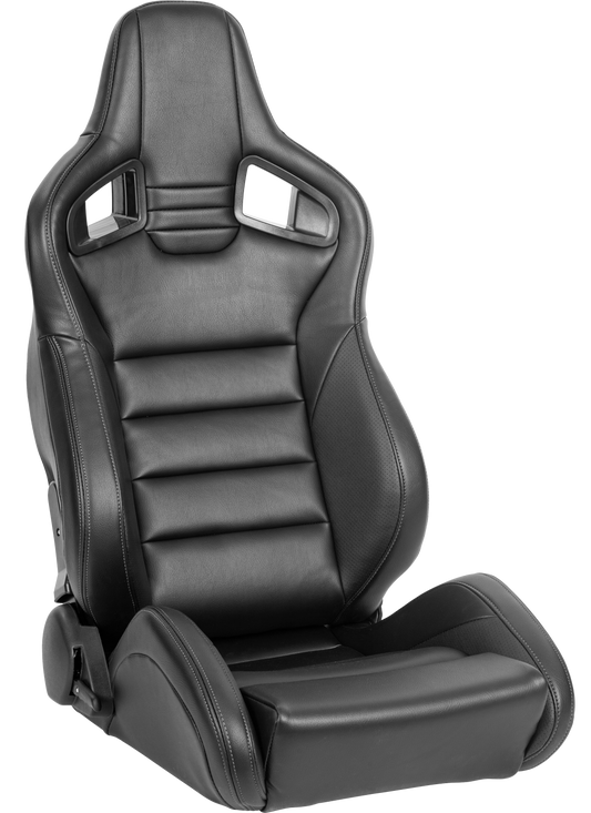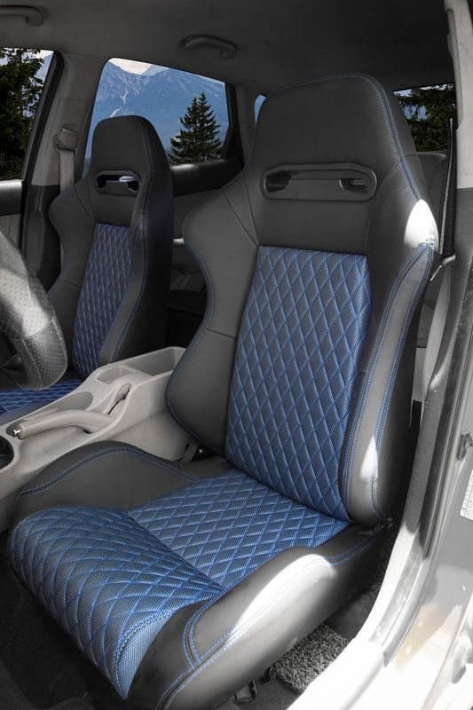 2PC Universal Bucket Racing Seats Red Stitch Red PVC Leather Reclinable Carbon Look Leather Back With Adjustor Slider(Not Including Seat Bracket ) 1 box of 2 pieces
