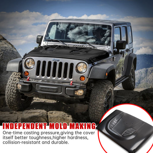 Vented Heat Dispersion Hood Compatible with Jeep Wrangler JK JKU 2007-2017,10th Anniversary Edition Metal Replacement Hoods Accessory Black
