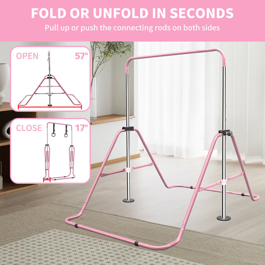 Expandable Gymnastics Bar for Kids - Height Adjustable Junior Training Bar for Home, Folding Gymnastic Horizontal Bars Equipment Pink