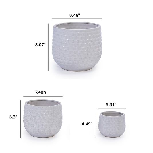 3 Pieces Ceramic Flowerpot, Modern Planter for Patio, Garden or Windowsills - Matte White