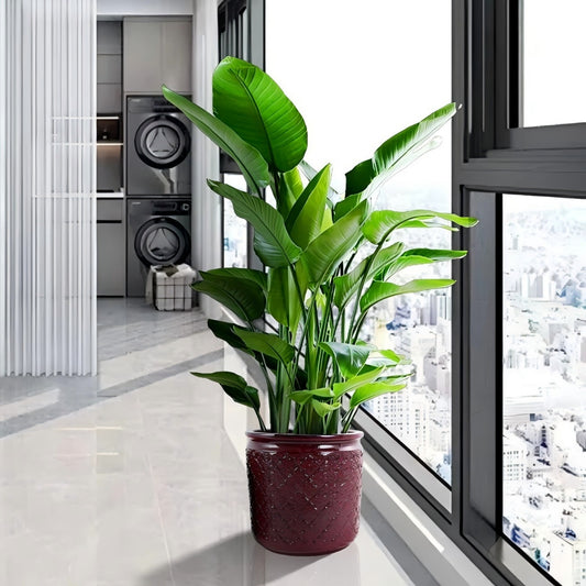 Set of 3 Ceramic Flowerpot, Modern Planter for Patio, Garden, Windowsill - Red