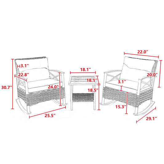 3pcs rocking rattan set wholesale leisure chair outdoor rattan rocking chair set grey