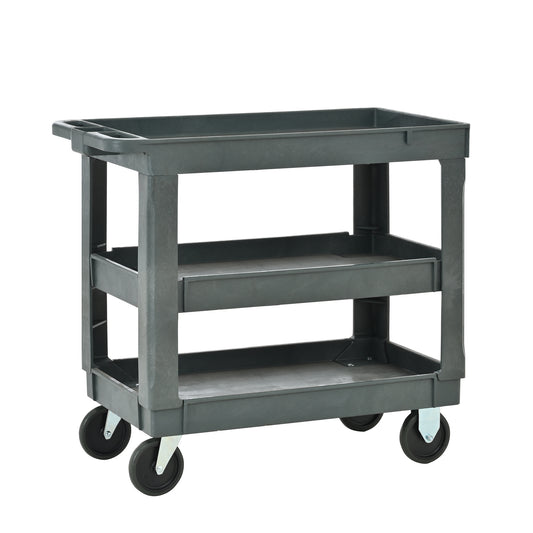 Foldable Utility Service Cart, 3 Shelf 165LBS Heavy Duty Plastic Rolling Cart with Lockable Wheels, Ergonomic Handle, Portable Garage Tool Cart for Warehouse/Office/Home(25.62'x15.43'x32.76')