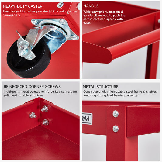 Two-Shelf Utility Cart with Wheels ,600 lbs. Capacity Rolling Utility & Tool Carts for Warehouses, Industrial Settings, Auto Garages, for indoor and outdoor, & More,with Locking Wheels