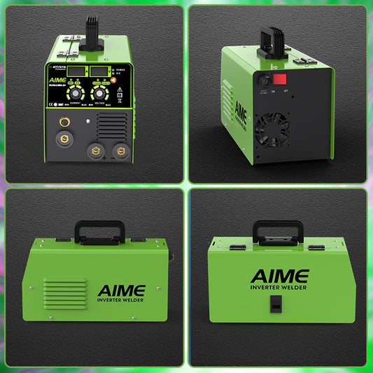 AIME 140A 3 in 1 MIG welder, solid core wire, MIG/Lift TIG/stick welding equipment 10 portable IGBT inverter with synergic control, LED display