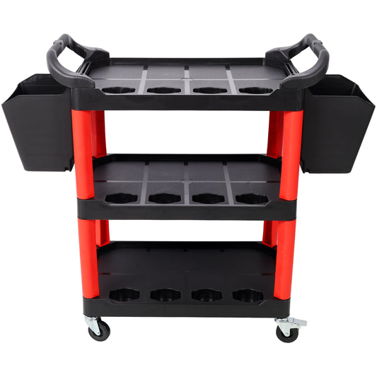 3 Tier Rolling Auto Detail Cart With Wheels,With 2pcs Bucket,for Detailers Garage, Workshop, Repair Shop, Storage Tool,Red&Black