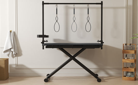 47'' Black Large Dog Grooming Table X-Lift Foldable Grooming Table for Dogs at Home Adjustable Height Arms Pet Station with Nooses, Tool Organizer