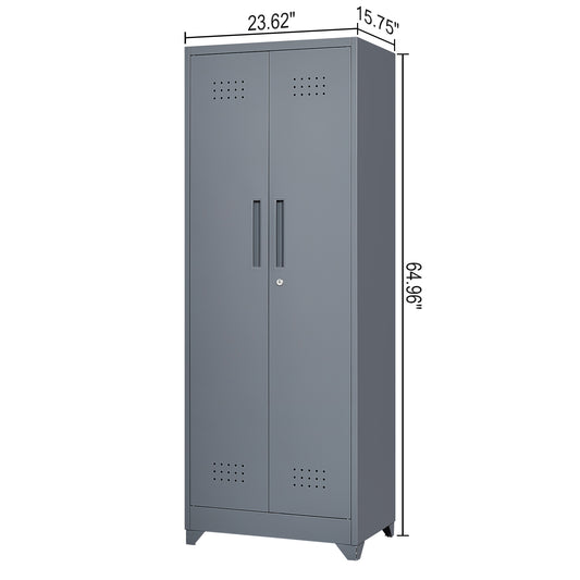 Gray Metal Lockers, Cleaning Tool Cabinets With Locking Doors, High Broom Tool Storage Cabinets, Adjustable Shelves, Large Cabinets For Kitchens, Offices, Shops.(72 Inches)