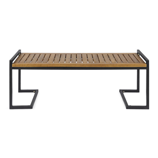 Zion Industrial Wood and Metal Rectangular Bench with Faux Live Edge Design in Teak Finish