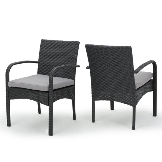 Outdoor Faux Rattan/Iron Metal Club Chair, Set of 2, Black