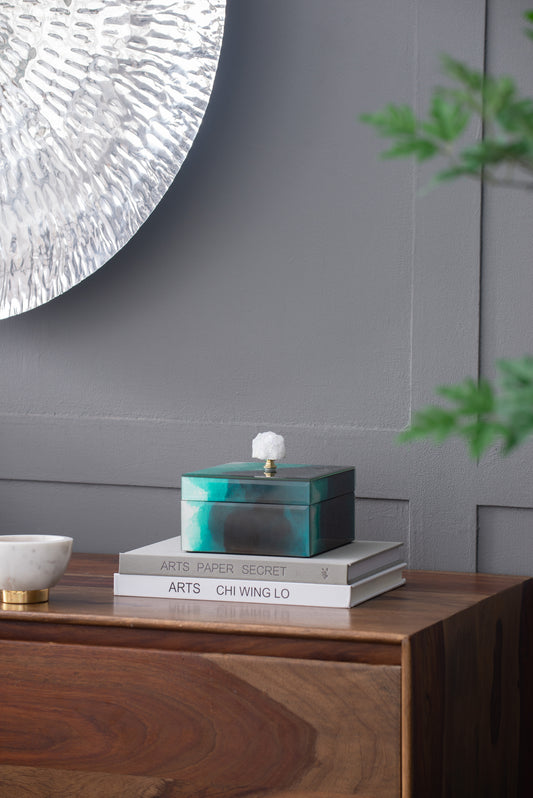 6' x 6' x 5' Bethany Aqua Jewelry Box, Stackable Decorative Storage Boxes With Lids
