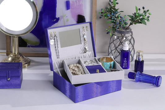 4' Long Travel Jewelry Case, Square Shaped, Azure Blue