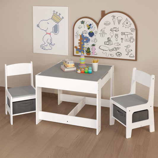 Kids Table and Chair Set, 3 in 1 Wooden Activity Table with Storage Drawer for Toddlers Drawing, Reading, Crafts, 2 in 1 Detachable Tabletop Table Set for Nursery, Playroom