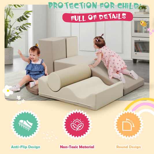 7-Piece Indoor Climbing Foam for Kids, Soft PU Toddler Climbing Toys, Indoor Climb and Crawl Activity Play Set