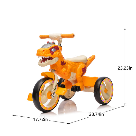 Kids Ride On Dinosaur Tricycle, Three-Wheel Stable Structure, Wider & Flash Wheels, Anti-slip Pedals & Handles, Rearward Storage Basket, Music, Lights, Cycling Training on Tricycles For Kids Aged 3-6.