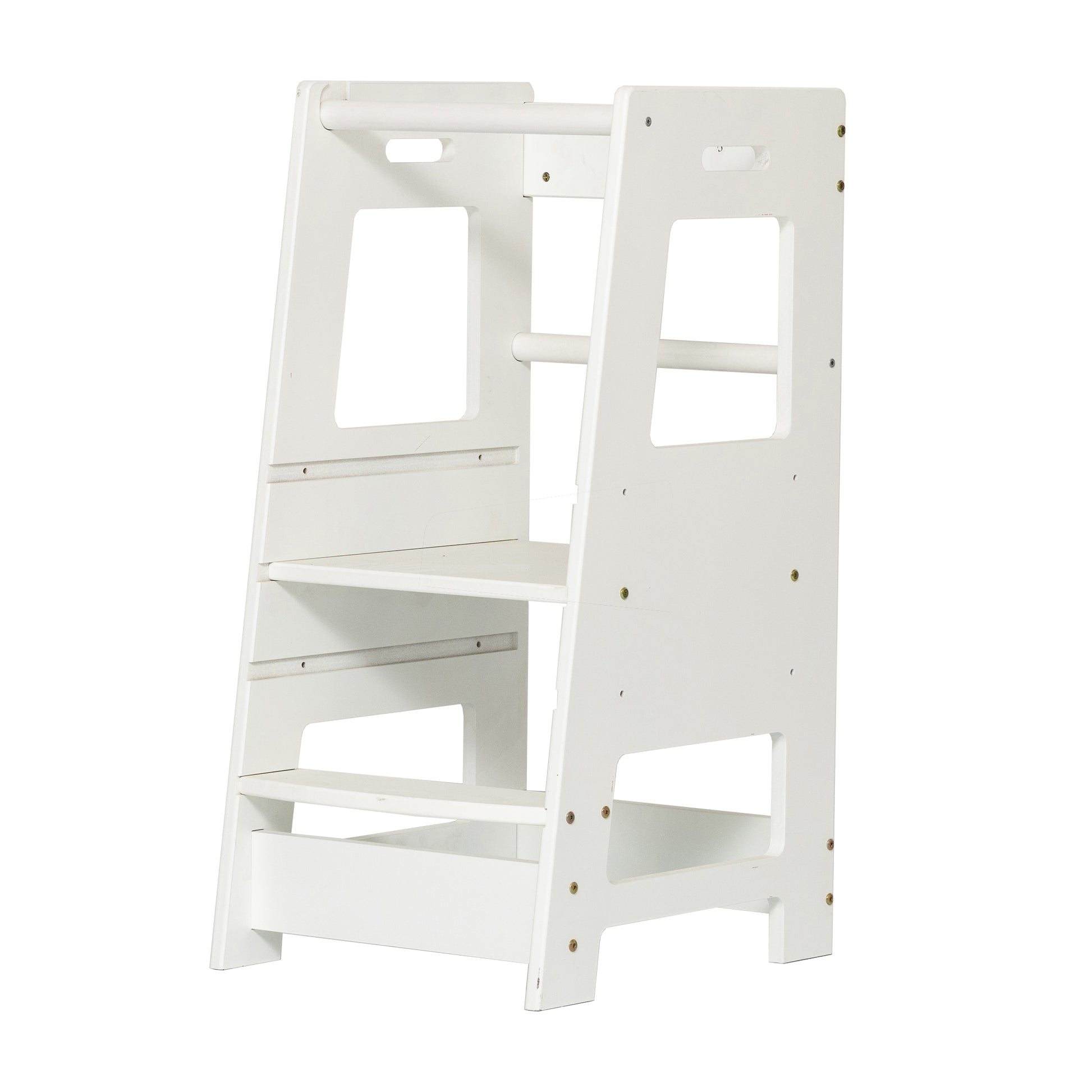 Toddler Standing Tower for Kitchen, Step Stool for Kid's Adjustable Height Learning Stool, Removable Anti-Drop Safety Rail Stool for Bedroom, Bathroom, White