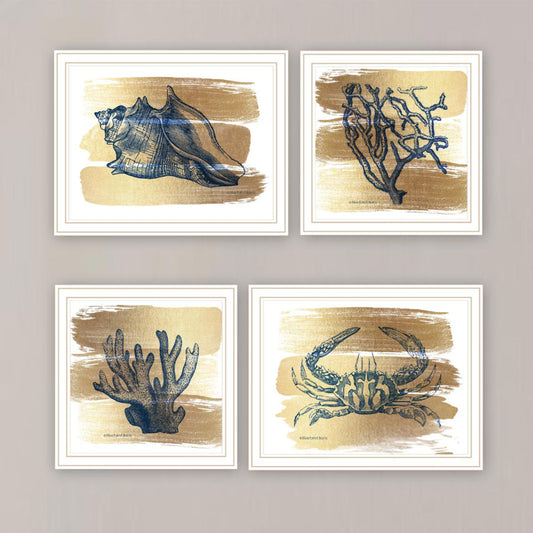 Trendy Decor 4U 4-PC Vignette Gold Sea Collection White Framed Wall Art for Living Room, Bedroom Wall Art Print for Home Decor by Bluebird Barn