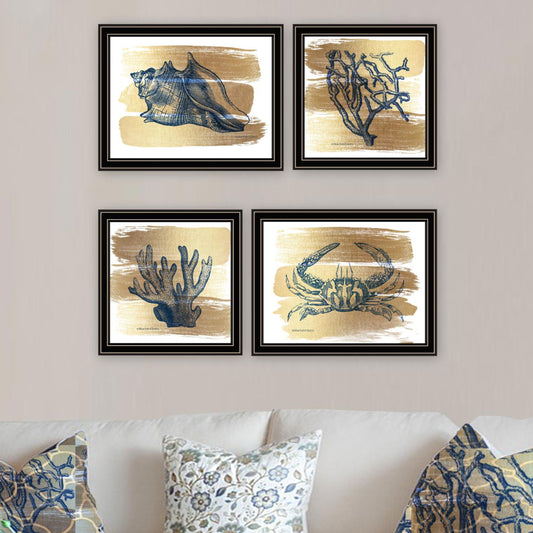 Trendy Decor 4U 4-PC Vignette Gold Sea Collection Black Framed Wall Art for Living Room, Bedroom Wall Art Print for Home Decor by Bluebird Barn
