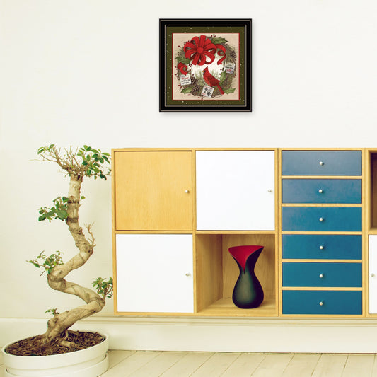 Trendy Decor 4U Cardinal Wreath Black Framed Wall Art for Living Room, Bedroom Wall Art Print for Home Decor by Linda Spivey