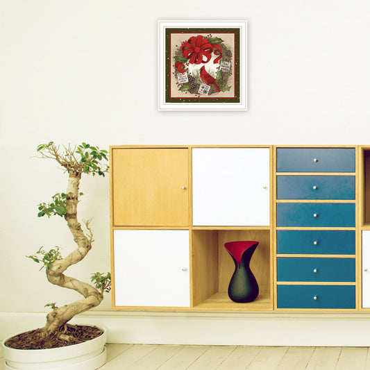 Trendy Decor 4U Cardinal Wreath White Framed Wall Art for Living Room, Bedroom Wall Art Print for Home Decor by Linda Spivey