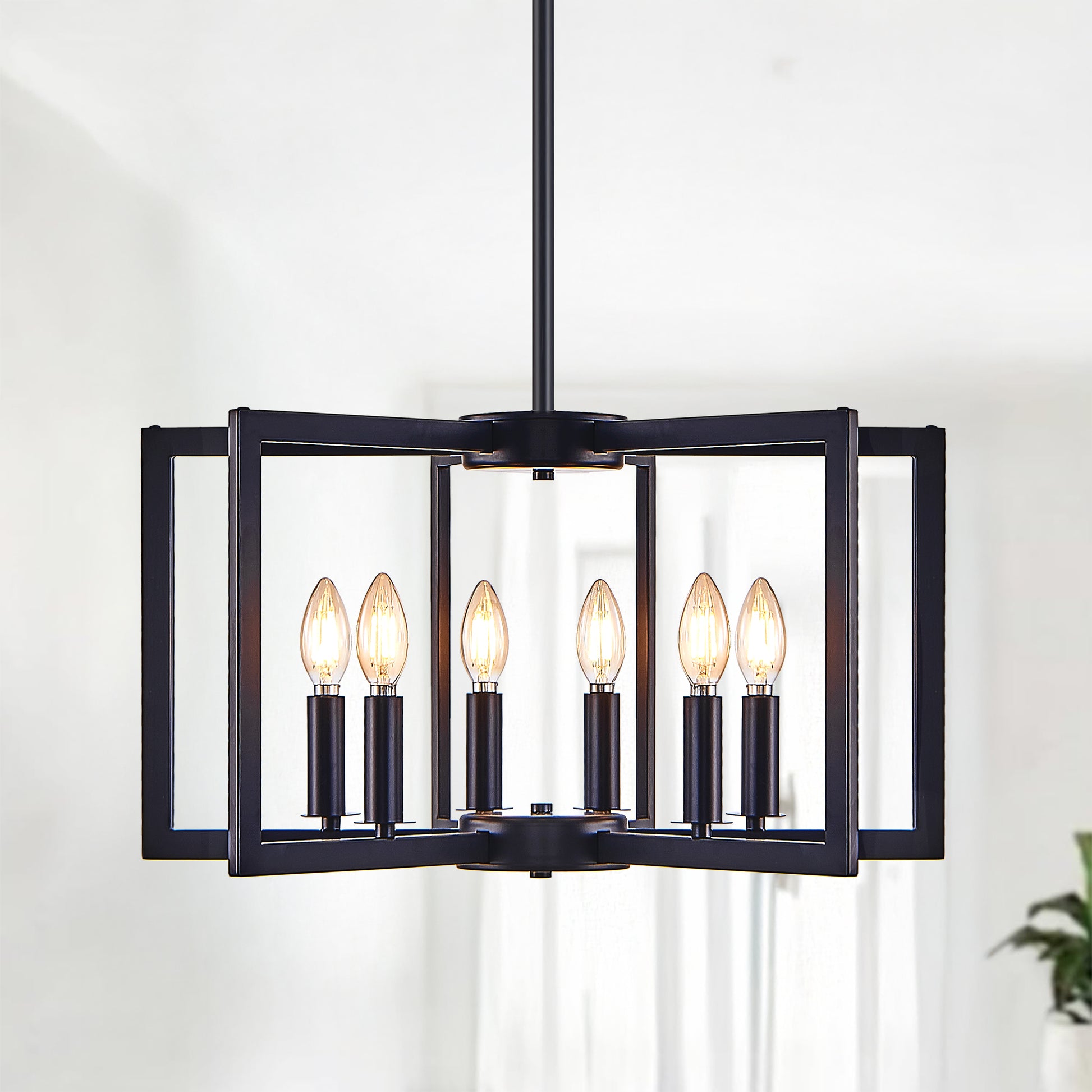 21' Modern Black Geometric 6-Light Chandelier – Industrial Metal Pendant Light Fixture
