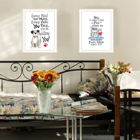 Trendy Decor 4U 2- Piece Vignette It's Called Furr-niture Isn't It? White Framed Wall Art for Living Room, Bedroom Wall Art Print for Home Decor by Deb Strain