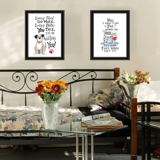 Trendy Decor 4U 2- Piece Vignette It's Called Furr-niture Isn't It? Black Framed Wall Art for Living Room, Bedroom Wall Art Print for Home Decor by Deb Strain