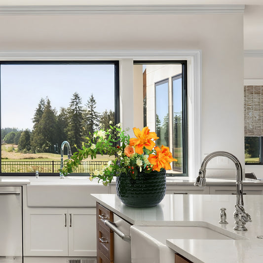 3 Pieces Ceramic Flowerpot, Modern Planter for Patio, Garden or Windowsills - Dark Green