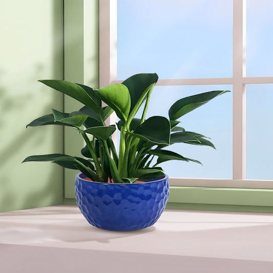 3 Pieces Ceramic Planter Pot, Modern Indoor Outdoor Flowerpot for Patio, Garden, or Windowsills - Antique Blue