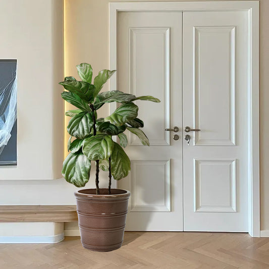 Set of 4 Fluted Ceramic Flowerpot, Modern Planter for Patio, Garden, Windowsill - Dark Coffee