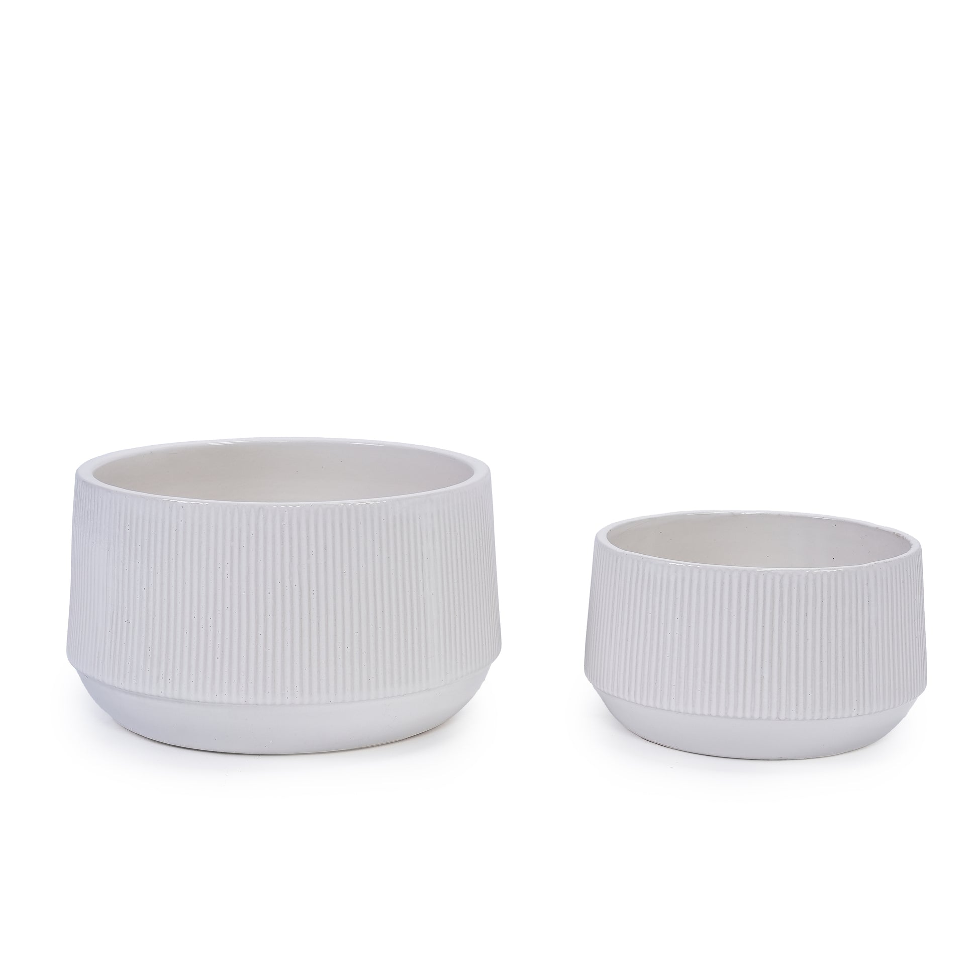 2 Pieces Ceramic Flowerpot, Modern Planter for Patio, Garden or Windowsills - Gloss White
