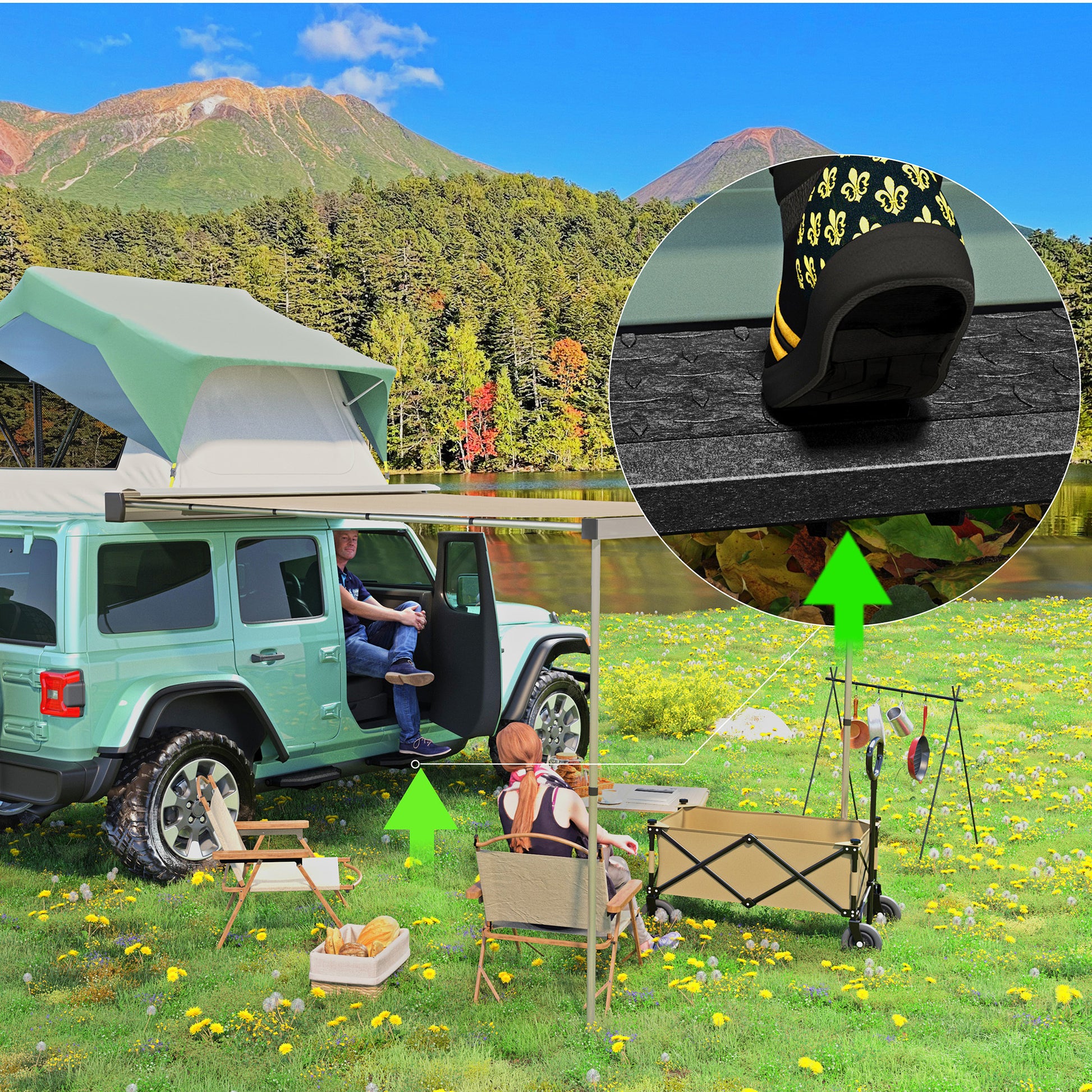 • Easy Installation: The step bars come with welded brackets for extra strength and stability. Installing them is quick and hassle-free, requiring minimal accessories and no cutting or drilling.Functional Convenience: With a two-stair layout, our step bars provide easy access for vehicles with lift kits and oversized wheel tires, making rooftop operations smoother and more convenient.