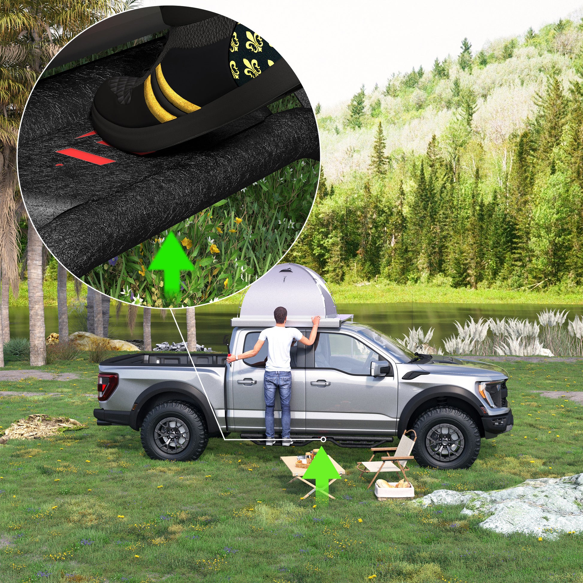 • Strong & Durable: Our running boards are built to last, with a unique powder coating that resists rust and corrosion. The laser-cut step plate offers a non-slip surface and reinforced grip, supporting up to 700 lbs. without bending.
