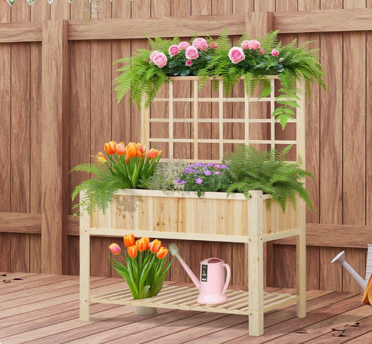 Wooden Raised Garden Bed , Coutryside Style Elevated Planter Box Stand w