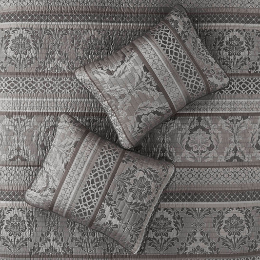 6-Piece Full/Queen 6 Piece Jacquard Quilt Set with Throw Pillows,Grey