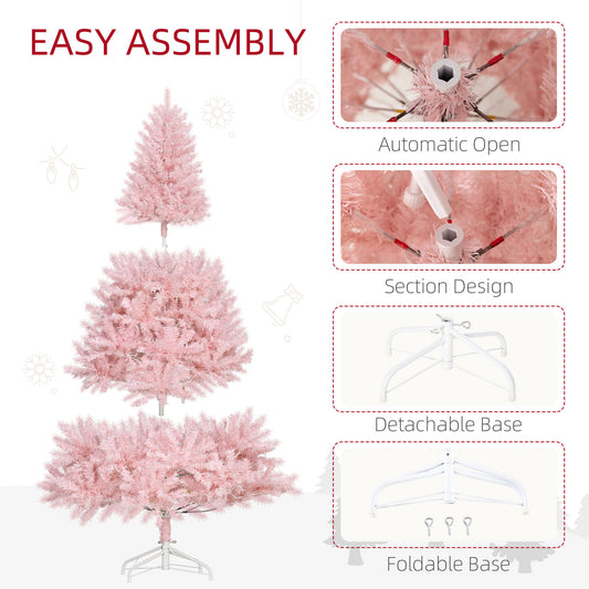 HOMCOM 6' Tall Prelit Christmas Tree Douglas Fir Artificial Christmas Tree with Realistic Branches, 250 Warm White LED Lights and 1000 Tips, Pink