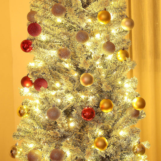 HOMCOM 9 ft Pre-Lit Pencil Christmas Tree, Artificial Christmas Tree with 310 Dual Color LED Lights and 895 Branch Tips, Flocked Xmas Tree with Metal Stand for Holiday Party, Green
