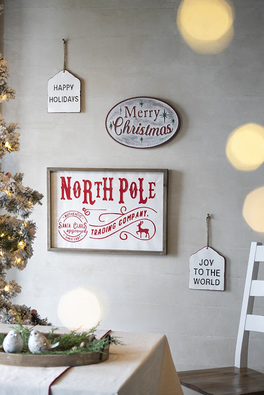 26x18'H Iron/Wood North Pole Trading Company Wall Sign, for Christmas Holiday Table Wall Decor