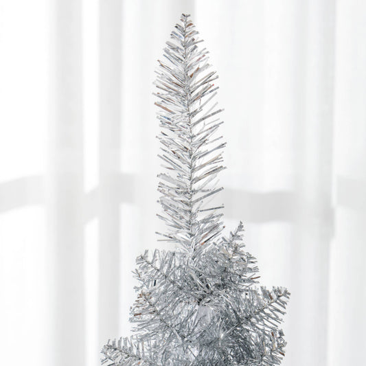 HOMCOM 5' Artificial Pencil Christmas Tree, Slim Xmas Tree with 294 Realistic Branch Tips and Plastic Stand, Silver